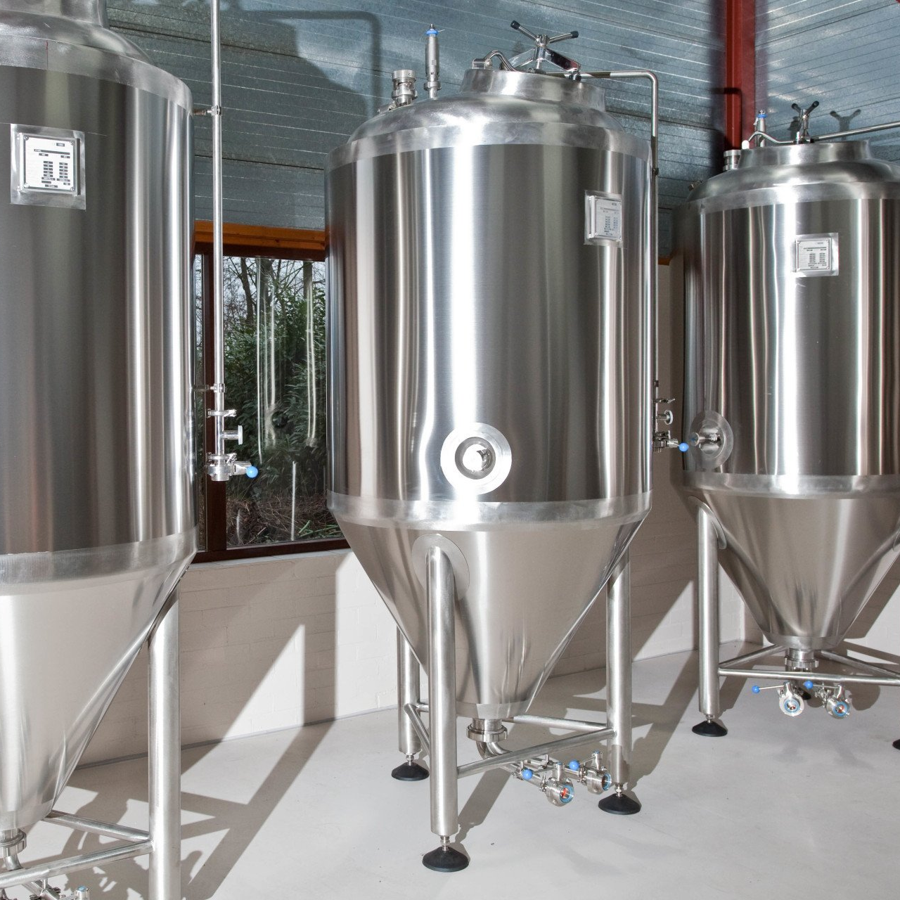 Die Edelstahl-Tanks sind auf 2 bar Druck ausgelegt und mit CIP-Armaturen für die Reinigung ausgestattet. Jeder Tank verfügt zusätzlich über einen Spundapparat zur kontrollierten Gärung und Karbonisierung.